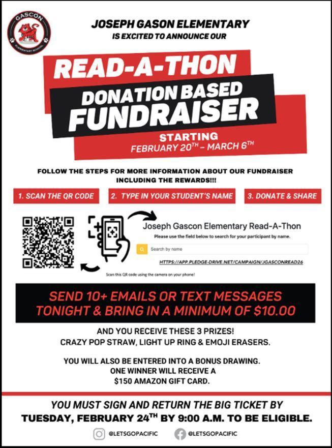 Get caught Reading! Join our School Read-A-Thon Fundraiser.